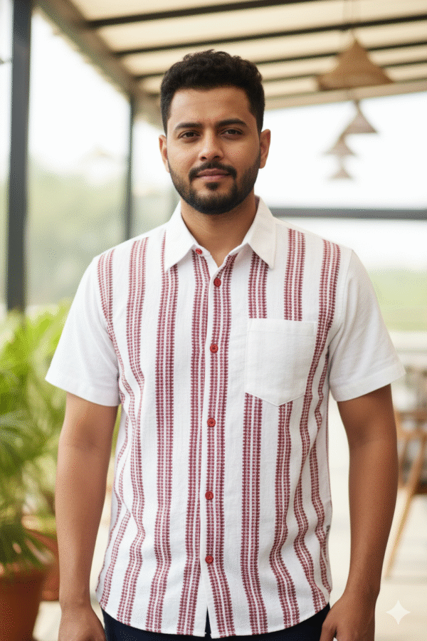 Kukhna Unisex Premium Regular Half Sleeve Shirt ,Kukhna Red & Green Line Style Unisex Half Sleeve Shirt